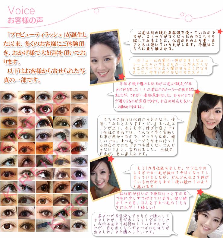 试用测试结果:每一位试用过后的客人的眼睫毛都变得粗长、有光泽并且根数明显增多。